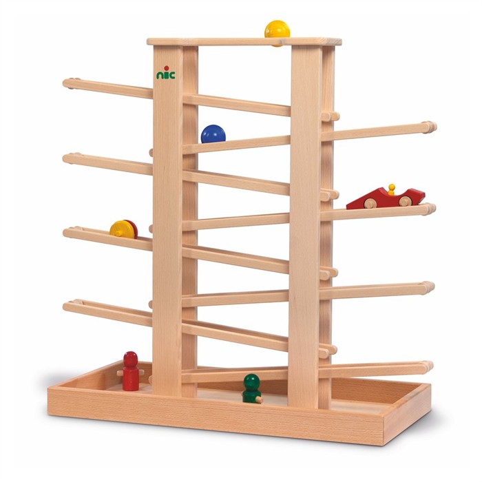 Die 6 bunten Laufteile sorgen für Aufmerksamkeit und Spannung. Die praktische Auffangschale dient zur Aufbewahrung der Laufteile und hat vor allem eine ordentliche Standfestigkeit. Unsere Bahn ist aus Buchenholz hergestellt und sehr hochwertig und massiv verarbeitet!