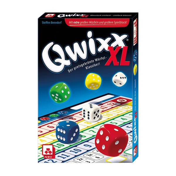 Bei Qwixx XL ist alles etwas grösser. Grössere Würfel (18 mm) und ein grösserer Spielblock (A6) machen alles einfacher. Ansonsten bringt auch Qwixx XL alles mit, was ein echter Würfel-Klassiker braucht: einfache Regeln, niedriger Preis, grosser Spielspass! Und das