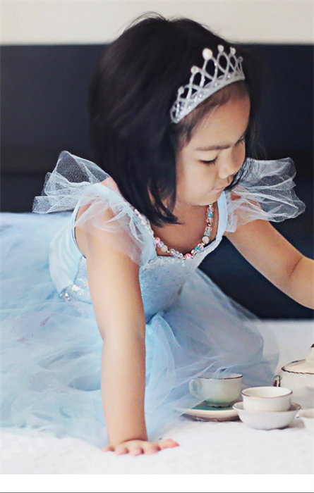 Sei eine perfekte Prinzessin in diesem glitzernden und glänzenden blauem Tutu-Kleid. Mit 2 Lagen aus weichem blauem Tüll und einer Lage irisierendem Glitzertüll wird dein Rock immer flauschig und glänzend sein. Das Paillettenoberteil ist aus schillernden Pailletten mit einem weichen Stretch-Elasthan-Futter. Die Träger sind aus dehnbarem Elasthan gefertigt und mit Tüllbauschen versehen. Eine kleine Satinschleife rundet dieses bezaubernde Prinzessinnenkleid ab und verleiht ihm einen Hauch von Klasse.