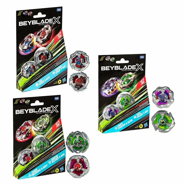Die nächste Generation von Beyblade Stadium-Arenen, Startern und Kreiseln: Beyblade X. Jeder Dual Pack enthält 2 Kreisel, um die eigene Sammlung zu erweitern (Beystadium-Arena und Starter erforderlich, separat erhältlich). Hiermit können Beyblade-Fans direkt ins Battle starten oder die austauschbaren Teile (Blade, Ratsche und Bit) gegen die Teile von anderen Beyblade X Kreiseln (separat erhältlich) tauschen, um ihren eigenen Kreisel zu erschaffen. Beyblade X wartet mit dem X-Celerator Beschleunigungssystem auf. Wenn das Zahnrad eines Beyblade X Kreisels in der Schiene der Beystadium-Arena einrastet, kommt es zu eine Super-Beschleunigung (Xtreme Dash), bei der der Kreisel durch die Arena geschleudert wird, um für coole Crashs und Berst-Momente zu sorgen. Hier können sich Blader ins Battle stürzen und Punkte erzielen. Wer zuerst 4 Punkte hat, gewinnt. Hasbro Beyblade Kreisel mit authentischen Takara Tomy Teilen aus Metall eignen sich hervorragend als Geschenk für Kinder ab 8 Jahren.