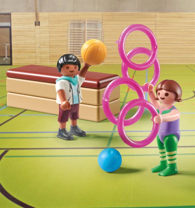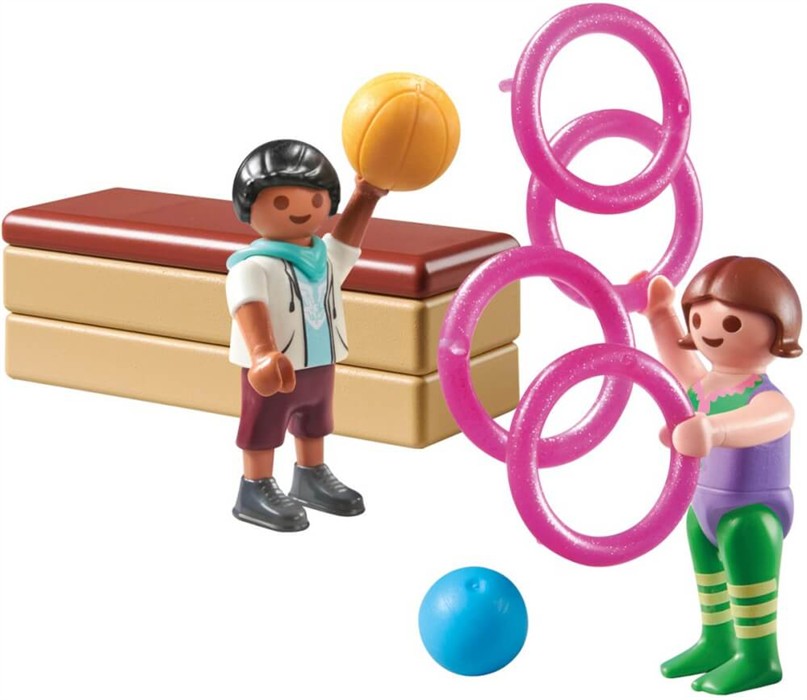 Ob Balance-Übungen perfektionieren oder neue Bewegungen ausprobieren die Jungen- und Mädchenfigur sind bereit für eine spannende Turnstunde. Egal, ob allein oder gemeinsam mit Freunden: Dieses **PLAYMOBIL Special Plus Set** bringt Bewegung und Spass ins Spiel!