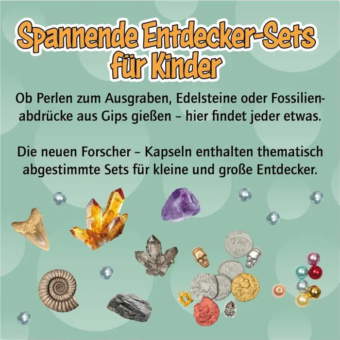 Ob Perlen zum Ausgraben, Edelsteine oder Fossilienabdrücke aus Gips giessen - hier findet jeder etwas.