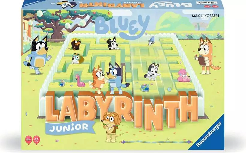 Die beliebte Blue Heeler-Hündin Bluey, die den Familienalltag in aussergewöhnliche Abenteuer verwandelt, hat sich dieses Mal mit ihrer Familie und Freunden in den Gängen des Labyrinths verirrt. Die Spieler versuchen ihre Lieblingsfiguren zu erreichen, indem sie bei jedem Spielzug den Spielplan verändern. Wer dabei den Überblick bewahrt, wird Wege zu den gesuchten Figuren finden und das Spiel gewinnen. Labyrinth ist ein Schiebespiel mit genial einfachem Spielprinzip für Kinder ab 4 Jahren!