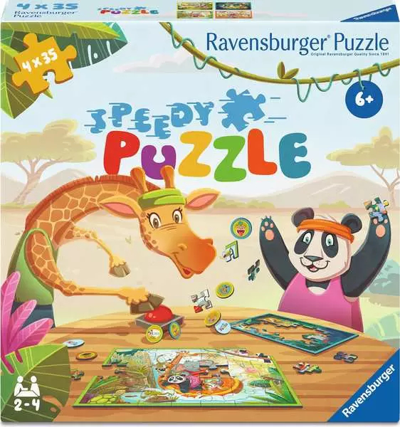 Auf die Puzzle, fertig, los! Mit der lustigen Speedy Puzzle-Reihe von Ravensburger puzzeln Kinder ab 6 Jahren um die Wette. 2-4 Puzzler treten gegeneinander an und versuchen Ihr Puzzle und die lustigen Aufgaben der Speedy Chips so schnell wie möglich fertigzustellen. Bei Speedy Puzzle wird das Puzzeln zur interaktiven Challenge. Hierbei trainieren Kinder nicht nur ihre Feinmotorik, Konzentration und Ausdauer, sondern haben dabei auch jede Menge Spass.
