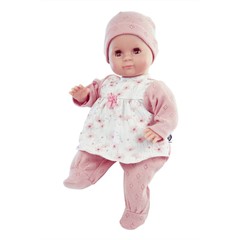 Puppe Schlummerle 32 cm mit Malhaar und braunen Schlafaugen, Kleidung rose/weiss