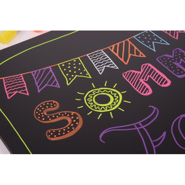 ... Ganz ohne Kraftaufwand schreibt es sich mit diesen Flüssigkreide Stiften auf Tafeln, Fensterscheiben, Spiegeln, Metall und Keramik. Die runde Spitze ist sowohl für feine Linien als auch zum Ausmalen von Flächen hervorragend geeignet.