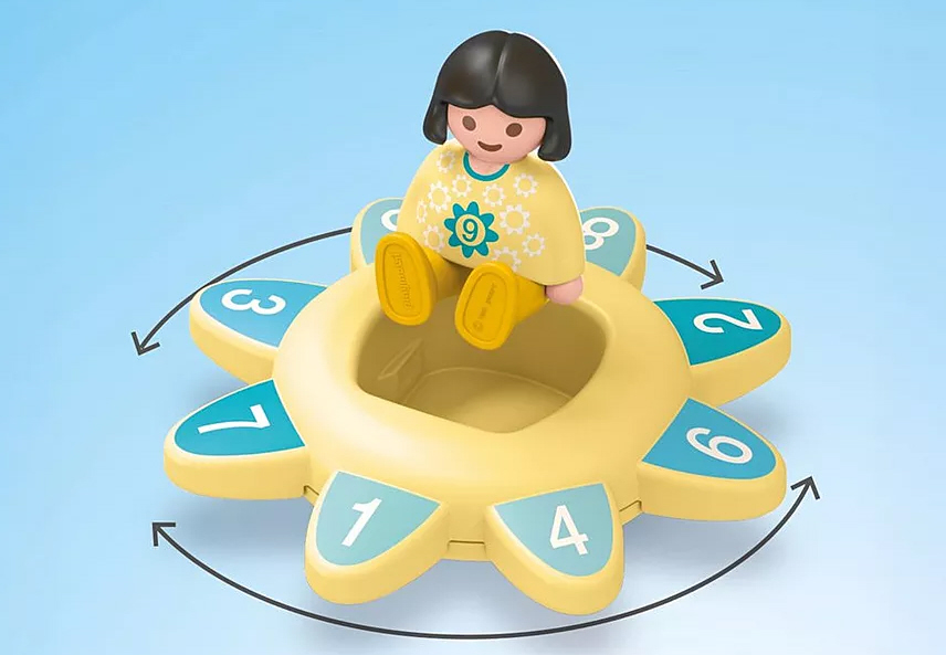 Rassel-, Dreh- und Zählspass wartet mit dem Sonnenkreisel auf kleine Entdeckerinnen und Entdecker: Hier kann dein Kind die Figur in schwungvolle Pirouetten bringen, Rasselgeräusche erzeugen und nebenbei die Zahlenwelt erkunden. Wo steht welche Zahl? Könnt ihr gemeinsam bis neun zählen?