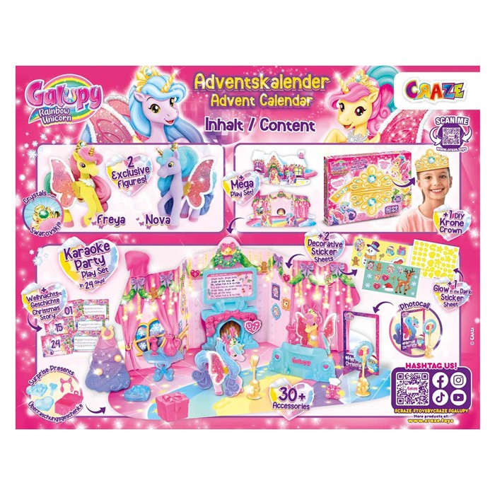 Mit jedem Tag wächst die bunte Galupy Welt ein Stückchen mehr und verwandelt das Warten auf Weihnachten in ein märchenhaftes Abenteuer. Perfekt für kleine Fans von Einhörnern, Regenbögen und magischen Geschichten.