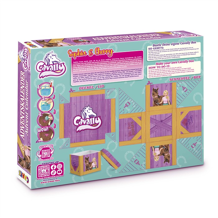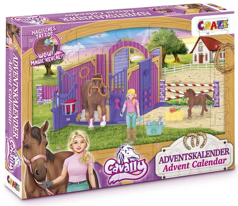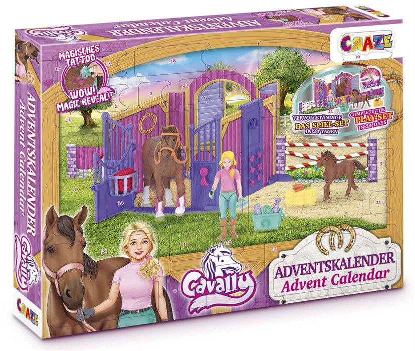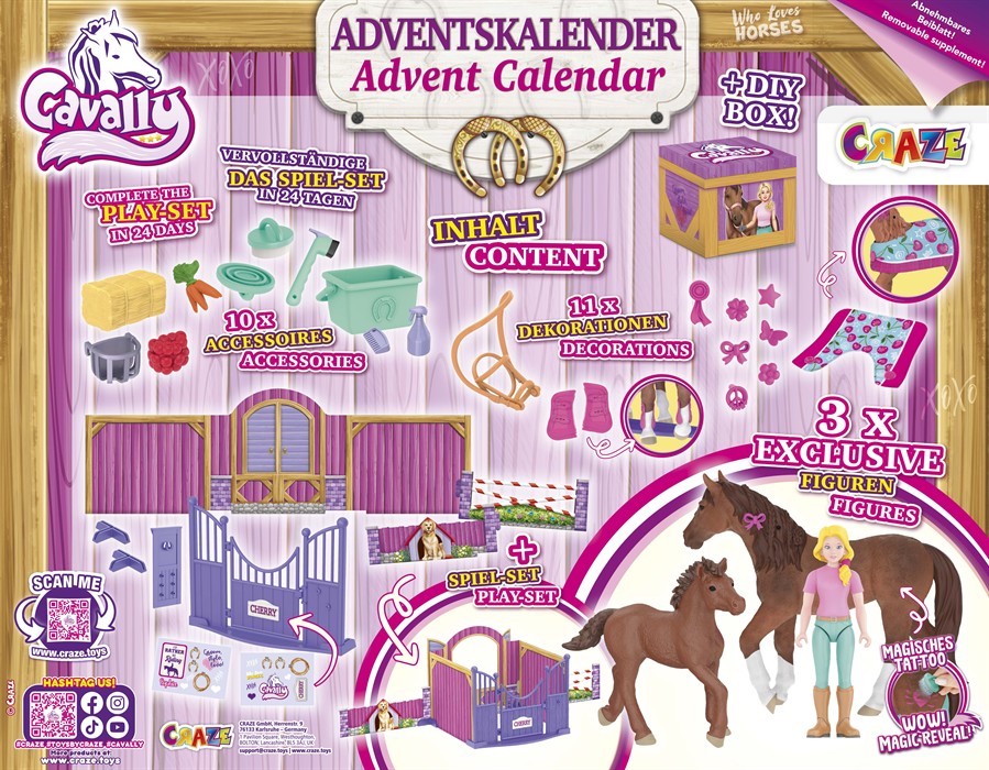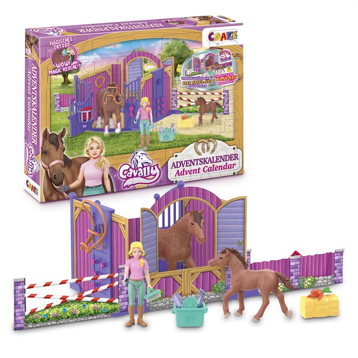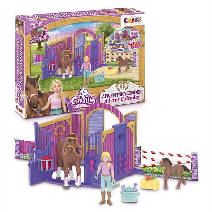 Ob Stall, Fohlen, Reiterin oder Pflegeutensilien jeden Tag kommt ein neues Teil dazu, das die Cavally-Welt lebendig macht. So wird die Adventszeit zu einem spannenden Reitabenteuer, das das Warten auf Weihnachten mit viel Spielspass und Pferdeliebe füllt.