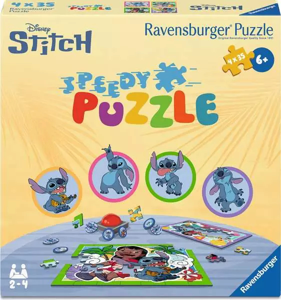 Auf die Puzzle, fertig, los! Mit der lustigen Speedy Puzzle-Reihe von Ravensburger puzzeln Kinder ab 6 Jahren um die Wette. 2-4 Puzzler treten gegeneinander an und versuchen Ihr Puzzle und die lustigen Aufgaben der Speedy Chips so schnell wie möglich fertigzustellen. Bei Speedy Puzzle wird das Puzzeln zur interaktiven Challenge. Hierbei trainieren Kinder nicht nur ihre Feinmotorik, Konzentration und Ausdauer, sondern haben dabei auch jede Menge Spass.