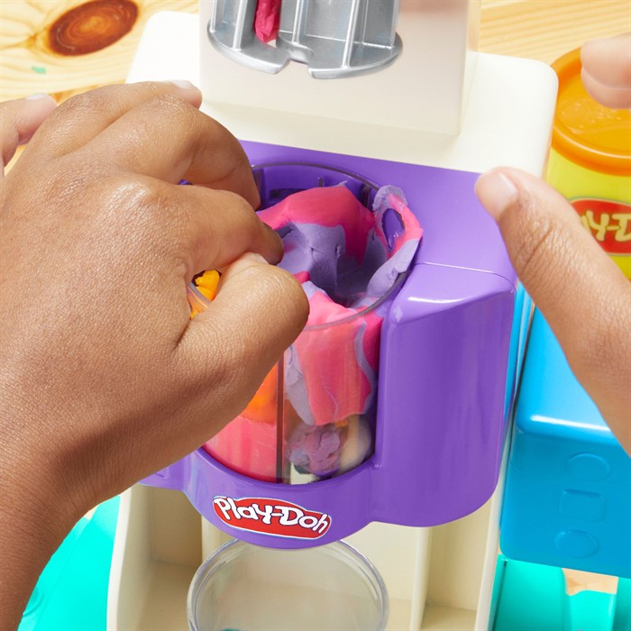 Play-Dohs Bunte Regenbogen Eismaschine lädt zum fantasievollen Spielen ein! Einfach 2 oder mehr Farben Play-Doh in die Maschine geben, den Griff drücken und schon füllt Regenbogen-Softeis den drehenden Becher oder die Eistüte. Kinder können Streusel und andere Play-Doh Lebensmittel wie Brezeln, fantasievolle Früchte und verrückte Süßigkeiten gestalten, um ihre Kreationen zu verzieren. Dieses Spielzeugeis-Set enthält einen Löffel, ein Knetmesser, eine Streusel-Schaufel, eine Eisschale, eine Eistüte und einen Becher mit Deckel, sodass Kinder Eisdiele spielen und sich vorstellen können, ihre Play-Doh Kreationen zu servieren. Dieses Play-Doh Set enthält 284 Gramm Play-Doh Spielknete, darunter 5 zweifarbige Dosen, mit der sich mehrfarbige Eiskreationen und Dekorationen herstellen lassen. Spielzeug-Küchengeräte wie dieses Play-Doh Küchenset für Kinder sind tolle Geschenke für Mädchen und Jungen ab 3 Jahren. PLAY-DOH und HASBRO sowie alle dazugehörigen Marken und Logos sind Marken von Hasbro, Inc.