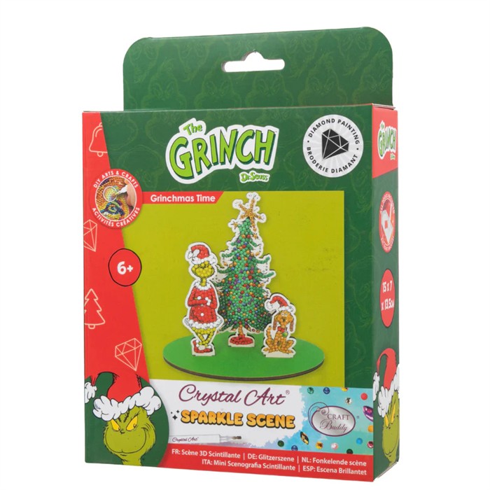 Neu! Gestalte deine eigene funkelnde «Whoville»-Weihnachtsszene! Mit dem «Grinchmas Time» Crystal-Art-Bastelset von Craft Buddy bringst du festlichen Glanz und eine Prise frechen Grinch-Humor in dein Zuhause. Dieses kreative 3D-Bastelprojekt zeigt den beliebten Grinch aus der Geschichte von Dr. Seuss, seinen treuen Hund Max und einen glitzernden Weihnachtsbaum alles aus stabilem MDF gefertigt, das sich ganz einfach zusammenstecken lässt, ganz ohne Kleber.