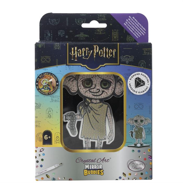 Der „Dobby Crystal Art® Mirror Buddy von Craft Buddy bringt den beliebten Hauselfen aus der Harry-Potter-Welt in einer ganz neuen, glitzernden Dimension zum Strahlen. Diese liebevoll gestaltete Figur steht auf einem edlen Spiegel-Sockel und beeindruckt durch den einzigartigen 3D-Effekt, der durch Lichtreflexion und funkelnde Kristalle entsteht. Mit rund 12 cm Grösse ist Dobby ein echter Blickfang als Dekoration, Sammlerstück oder Geschenk für alle, die Magie lieben.