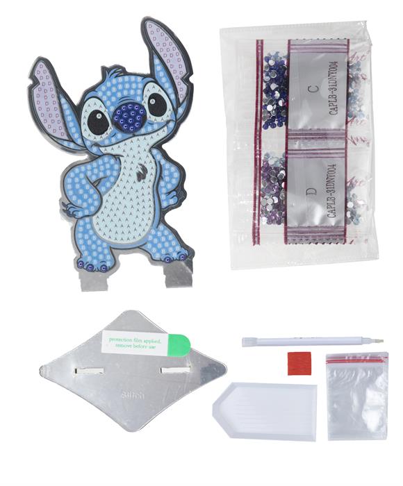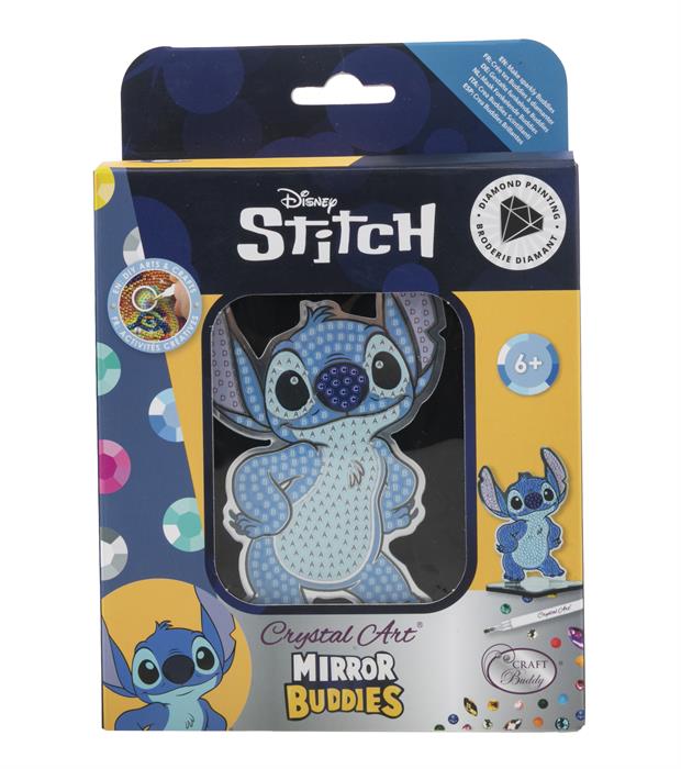 Der „Stitch Crystal Art® Mirror Buddy von Craft Buddy bringt den beliebten ausserirdischen Wirbelwind aus Disneys Lilo & Stitch in glitzernder Form zu dir nach Hause. Diese charmante Figur steht auf einem edlen Spiegel-Sockel, der das Licht reflektiert und einen faszinierenden 3D-Effekt erzeugt. Mit schimmernden blauen, violetten und silbernen Kristallen besetzt, wird Stitch zum strahlenden Highlight deiner Sammlung ein perfektes Geschenk für alle Disney- und Crystal-Art-Fans!