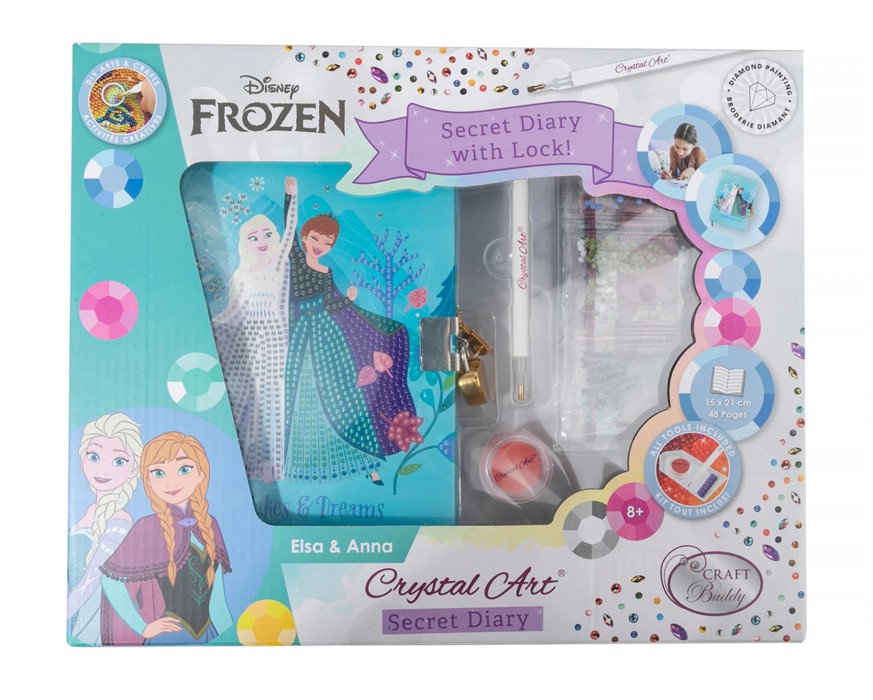 Neu! Ein Tagebuch voller Magie, Glanz und Geheimnisse! Mit dem Kristall Mosaik Geheimtagebuch „Elsa & Anna gestaltest du dein eigenes glitzerndes Buch mit den beliebten Schwestern aus Die Eiskönigin™. Mit hunderten kleiner Glanzsteinchen bringst du das winterlich schöne Titelbild von Elsa und Anna zum Funkeln perfekt für alle, die Magie, Freundschaft und Kreativität lieben.