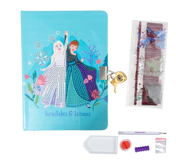 Mit der Kristall Mosaik Technik beklebst du nummerierte Flächen mit glitzernden Steinchen und gestaltest so dein eigenes strahlendes Kunstwerk. Das Ergebnis ist ein persönliches Tagebuch, das Fantasie, Kreativität und den Zauber von Die Eiskönigin™ vereint.