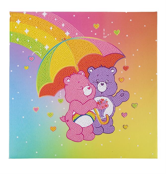 Neu! Lass dich von einem Regenbogen voller Liebe verzaubern! Das Craft Buddy «Im Regen der Liebe» Crystal-Art-Set (30 × 30 cm) zeigt zwei herzige Bären, die sich unter einem bunten Regenschirm aneinanderkuscheln, während funkelnde Herzen und Regenbogenfarben die Szene umgeben. Das fröhliche Motiv strahlt Geborgenheit und Freundschaft aus ein echtes Wohlfühlbild, das mit jedem glitzernden Steinchen zum Leben erwacht.