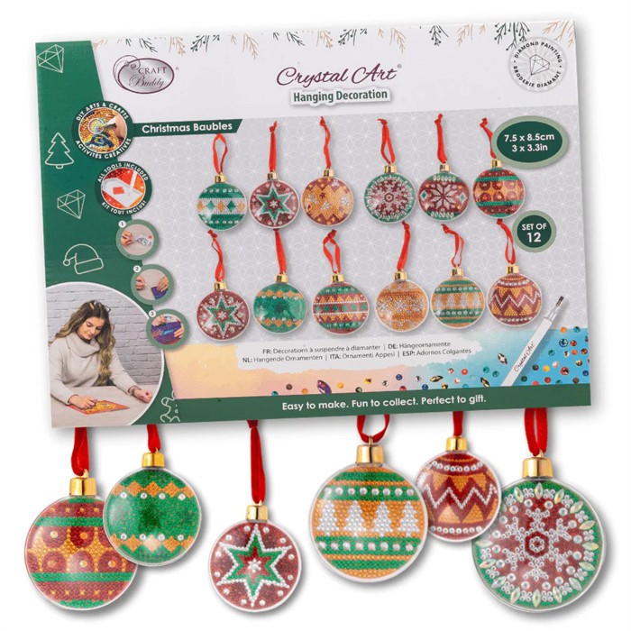 Neu! Verleihe deiner Weihnachtsdekoration funkelnden Glanz mit den festlichen «Christmas Baubles». Dieses wunderschöne Set aus zwölf Crystal Art® Hängedekorationen sorgt für eine stimmungsvolle Atmosphäre und bringt weihnachtlichen Schimmer in dein Zuhause. Ideal zum Aufhängen am Weihnachtsbaum, im Fenster oder als liebevolle Dekoration an Geschenken. Jedes einzelne Ornament kann individuell gestaltet werden und ist ein echtes Highlight in deiner festlichen Dekoration.