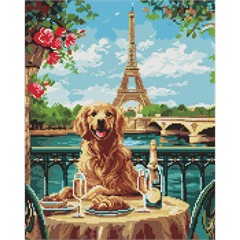 Ideyka AMO8054 Diamond Painting Retriever in Paris 40 x 50 mit Rahmen