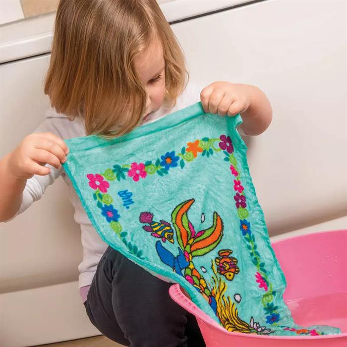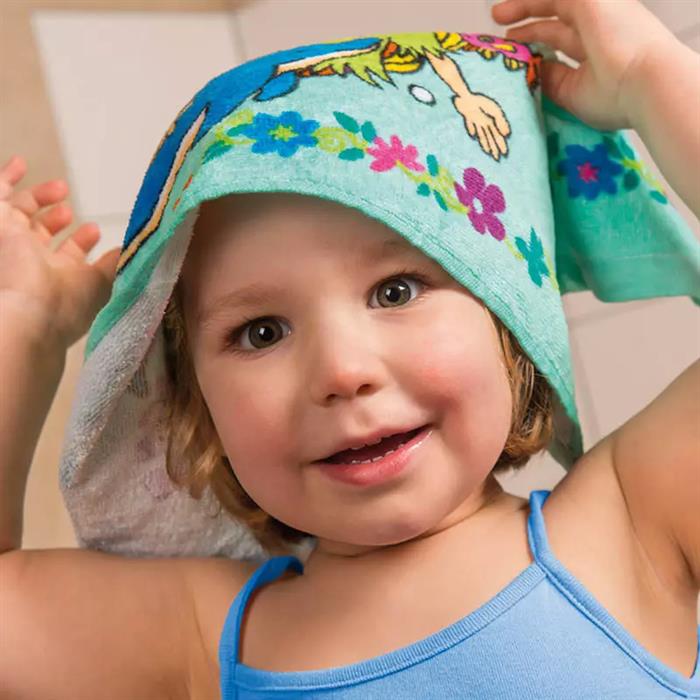 Ins Wasser getaucht, entfaltet sich ein fröhlich buntes Kinderhandtuch (waschmaschinen- und trocknergeeignet). Feste, flauschige und hochwertige Qualität.