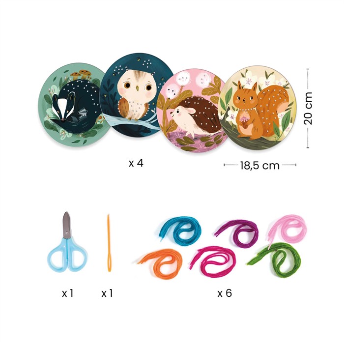 Mit diesem liebevollen Fädelset von Djeco lernen Kinder ab 3 Jahren spielerisch den Umgang mit Wolle und Nadel. Die stabilen, vorgestanzten Karten mit fröhlichen Motiven laden dazu ein, bunte Wollfäden durch die Löcher zu führen so entstehen im Nu hübsch verzierte Bilder. Das macht Spass, fördert Konzentration und trainiert ganz nebenbei die Feinmotorik.