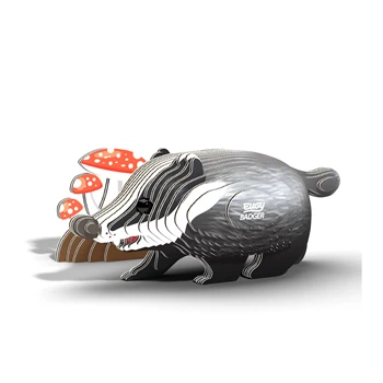 Neugierig, flink und mit unverwechselbarer Zeichnung mit dem EUGY Dachs bastelst du dir den cleveren Waldbewohner als süsses 3D-Modell. Mit seiner markanten Schnauze und den weissen Streifen über dem Kopf sieht er täuschend echt aus und sorgt für tierisch guten Bastelspass.