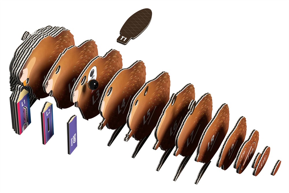 Fleissig, geschickt und ein echter Baumeister mit dem EUGY Biber bastelst du dir den eifrigen Nager als detailreiches 3D-Modell. Mit seinem breiten Schwanz, den kleinen Pfoten und den typischen Schneidezähnen ist der Biber ein liebevolles Symbol für Natur und Tatkraft.