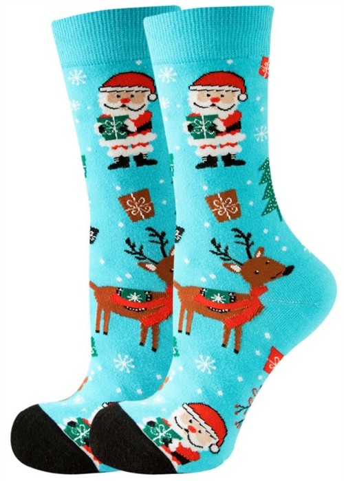 Diese festlichen Socken bringen Weihnachtsstimmung pur! Mit fröhlichem Santa, Rentieren, Schneeflocken und Geschenken verbreiten sie gute Laune und ein Lächeln perfekt für gemütliche Wintertage.
