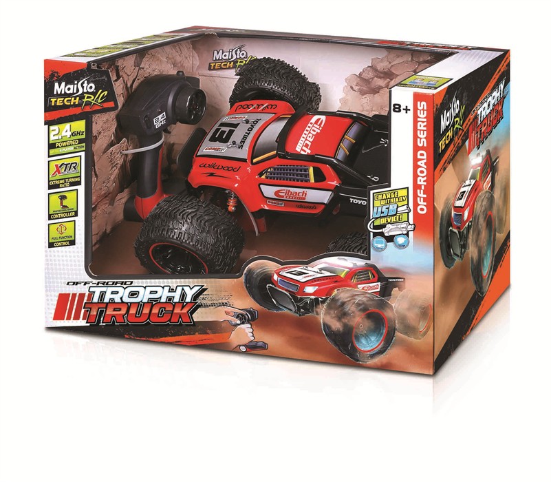 Action pur für alle RC-Fans! Der Maisto RC Trophy Truck überzeugt mit starker 2.4 GHz-Fernsteuerung, präziser Proportionalsteuerung und einer Geschwindigkeit von bis zu 17.3 km/h. Dank des leistungsstarken 6.4 V Lithium-Akkus und des praktischen USB-Ladegeräts bist du schnell wieder einsatzbereit für stundenlangen Fahrspass auf jedem Terrain.