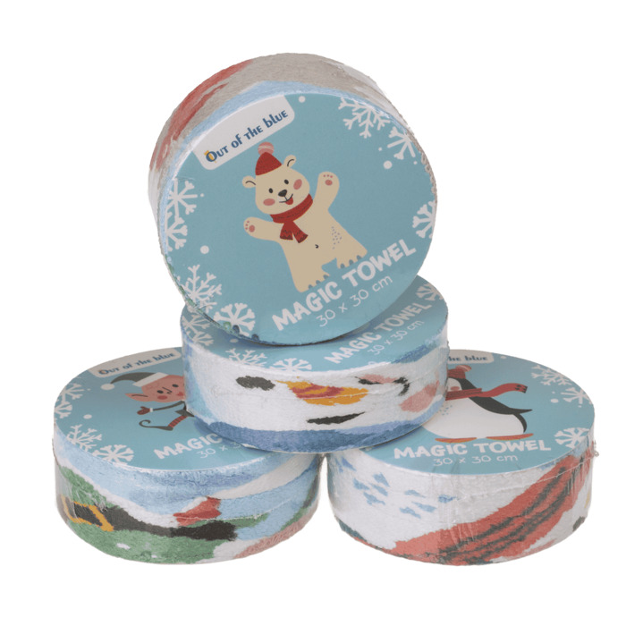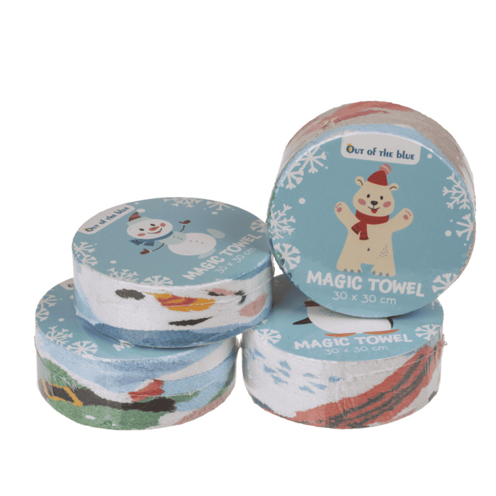 Diese magischen Handtücher sorgen für einen tollen Überraschungseffekt: Winzig zusammengepresst sehen sie aus wie kleine Winterpäckchen doch sobald man sie ins Wasser legt, entfalten sie sich zu einem weichen Baumwoll-Handtuch mit einem fröhlichen Wintermotiv.