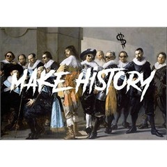 Dieses aussergewöhnliche Motiv verbindet klassische Malerei mit moderner Urban-Art-Attitüde. Die historische Szene wird bewusst durchbrochen vom markanten Schriftzug «MAKE HISTORY», der dem Bild eine kraftvolle, zeitgenössische Botschaft verleiht. Das Ergebnis ist ein spannender Mix aus Tradition, Rebellion und Stilbruch.