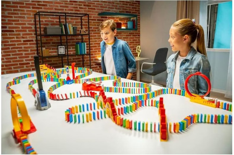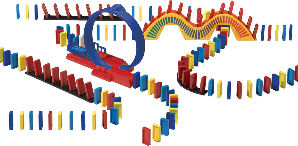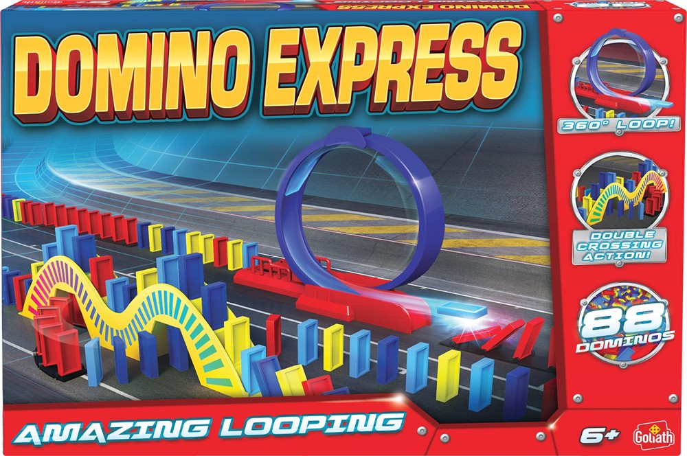 Pure Action mit Domino Express. Das Domino Express Amazing Looping Set bietet Spannung Pur mit aufregenden Loopings und Express Steinen, die noch mehr Action in die fallenden Domino Steine bringt.