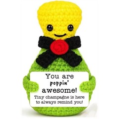 Dieser kleine gehäkelte Champagnerfreund ist zwar nur 12 cm gross, aber dafür voller guter Laune und garantiert ohne Kater am nächsten Morgen. Mit seinem breiten Grinsen und der frechen Botschaft ist er das perfekte Geschenk für alle, die einen humorvollen Push brauchen.