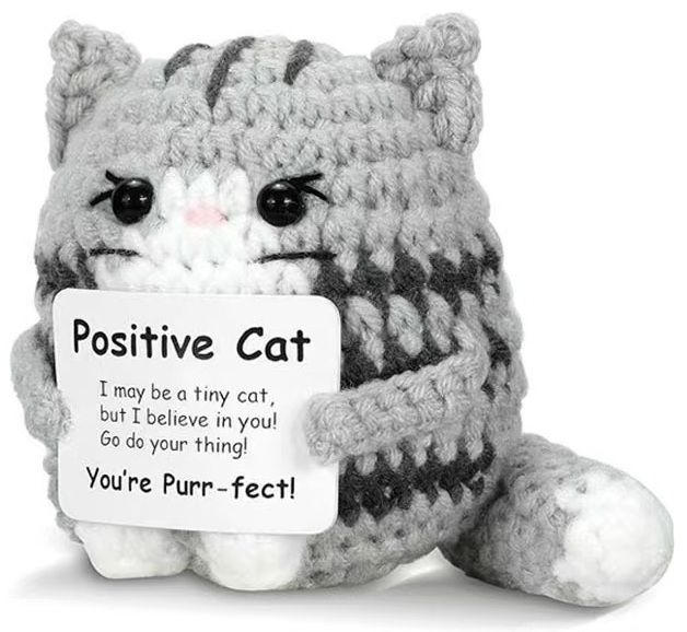 Diese gehäkelte Mini-Katze ist zwar winzig, aber randvoll mit Mutmach-Power. Mit ihren kugelrunden Augen, den süssen Pfötchen und dem kuscheligen Flauschfell ist sie der perfekte Alltagsbegleiter für alle, die ein liebevolles Augenzwinkern gebrauchen können.