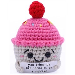 Dieser gehäkelte Mini-Cupcake ist nicht nur absolut zum Anbeissen süss, sondern auch ein echter Stimmungsheber. Mit seinem rosa Topping, der knallroten Kirsche und dem fröhlichen Gesicht zaubert er jedem ein Lächeln ins Gesicht.