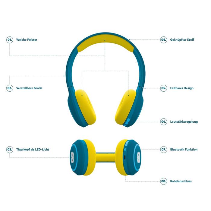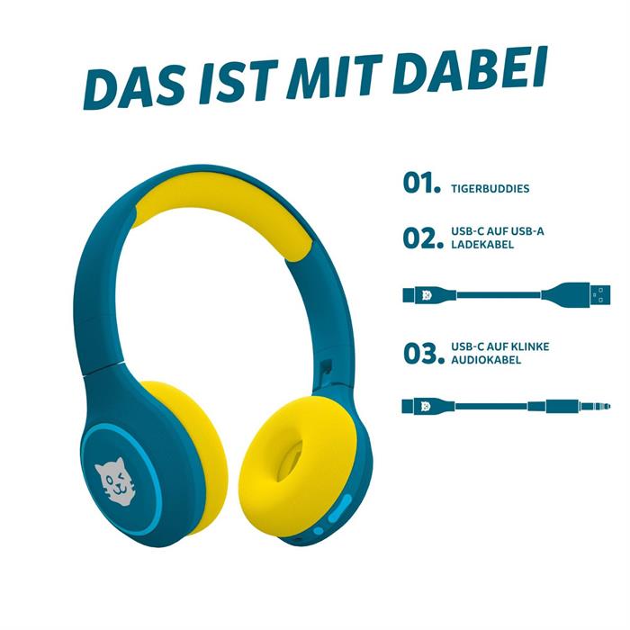 Die tigerbuddies sind die perfekten Kopfhörer für Kinder zwischen vier und zwölf Jahren. Sie sehen nicht nur cool aus, sondern sind auch besonders bequem und sicher für empfindliche Kinderohren. Dank der integrierten Lautstärkebegrenzung von 85 dB wird die Lautstärke automatisch begrenzt und schützt so das Gehör der Kinder zuverlässig.