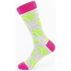 Diese sportlichen Tennis-Socken bringen Schwung in jeden Tag! Mit den leuchtend grünen Tennisbällen auf grauem Hintergrund und den pinken Akzenten sind sie ein farbenfroher Hingucker für alle Tennisfans egal ob auf dem Platz oder im Alltag.