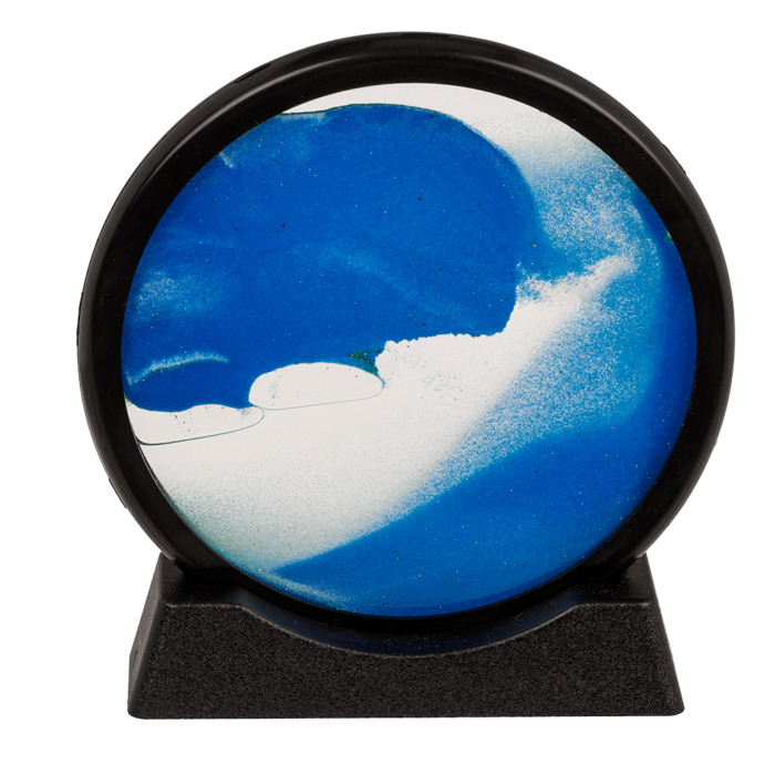 Dieses Sandbild lädt zum Beobachten und Abschalten ein. Beim Drehen entstehen immer neue, sanft fliessende Muster, die an Landschaften, Wellen oder Wolken erinnern. Ein kleines Ruheobjekt für den Schreibtisch, das Regal oder als Geschenk.