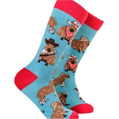 Diese Socken bringen Western-Stimmung direkt in den Alltag: fröhliche Kühe mit Cowboyhut, die aussehen, als würden sie gleich zum nächsten Abenteuer aufbrechen. Ein Design mit Augenzwinkern, das sofort gute Laune macht.