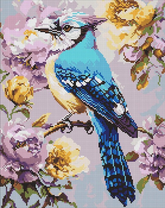 Ideyka AMO8294 Diamond Painting Eichelhäher in Pfingsrosen 40 x 50 cm