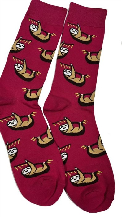 Diese Socken nehmen das Leben ganz entspannt. Die kleinen Faultiere hängen gemütlich herum und erinnern daran, dass man nicht immer alles sofort erledigen muss.