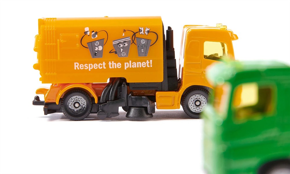 Die beiden Modelle besitzen stabile, zweiachsige Kunststofffahrgestelle mit leichtgängigen Rädern und robuste Metall-Fahrerhäuser. Die Kehrmaschine ist mit einem Aufbau aus Kunststoff und einer Saugeinrichtung ausgestattet, während der Müllwagen über einen kippbaren Aufbau und eine zu öffnende Heckklappe verfügt. Der Aufdruck „Clean your City auf dem Müllwagen unterstreicht die Mission: Mit diesem Set können kleine Stadtreiniger voller Begeisterung ans Werk gehen und spielerisch für Sauberkeit sorgen.
