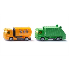 Dieses neue Kommunalset von siku bringt Sauberkeit und Ordnung in die Stadt jetzt mit frischem Design! Der Müllwagen erstrahlt in lebendigem Grün, während die Kehrmaschine im kräftigen Orange auffällt, beide mit moderner Bedruckung. Gemeinsam sorgt das kraftvolle Duo dafür, dass Straßen und Plätze blitzblank bleiben, und ist bereit für alle Aufgaben im Kinderzimmer.
