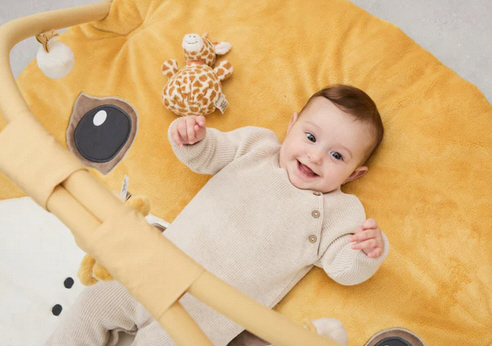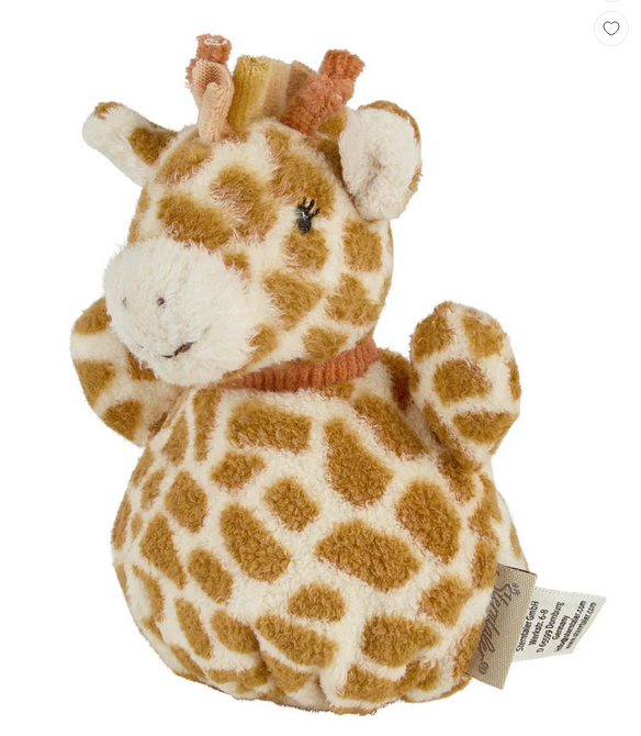 Das Knuddelsäckchen Giraffe Kaya ist das perfekte Spielzeug für neugierige Babys, die erste Greif- und Hörerfahrungen machen möchten.
