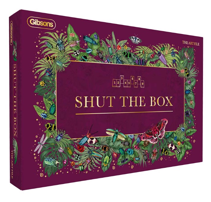 Geniessen Sie das klassische Zahlenspiel „Shut the Box mit den wunderschönen Designs von The Art File.