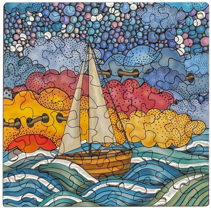 Ein wunderschönes Puzzle mit einem stimmungsvollen Segelboot-Motiv. Die kräftigen Farben, die vielen kleinen Details und die fantasievolle Darstellung von Himmel und Wellen machen dieses Puzzle zu einem echten Hingucker.