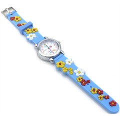 Kinderuhr mit Quartzwe - Hellblau mit Blumen Motiv