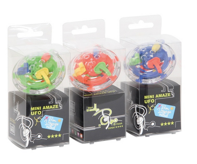 Mit dieser Mini-Version des beliebten Amaze UFO wartet ein spannendes Geschicklichkeitsspiel im Taschenformat. Ziel ist es, die Metallkugel sicher durch das dreidimensionale Labyrinth zu manövrieren vorbei an Abhängen, Plattformen, Spiralen, Treppen und beweglichen Elementen.