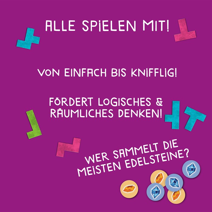 • Wandelbarer Knobelspass für die ganze Familie: In jeder Runde zuerst die eigene Legefläche zusammentüfteln, dann um die Wette knobeln.