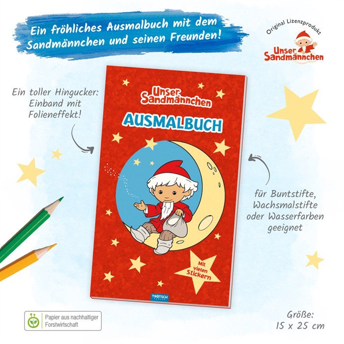 Trötsch 20068 Unser Sandmännchen Malbuch/Ausmalbuch mit Stickern